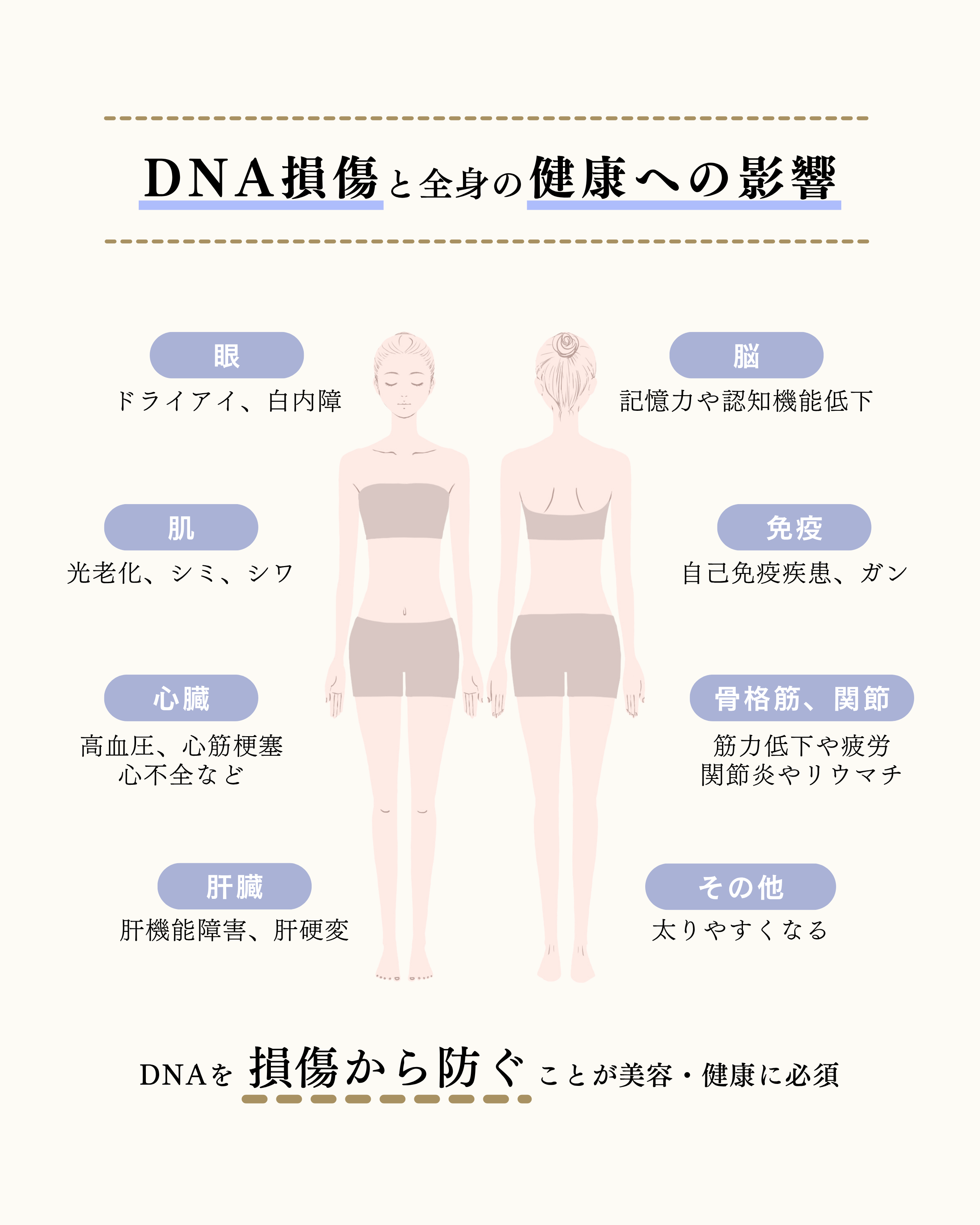 DNAは体内の抗酸化酵素によって、過剰な活性酸素から守られています。