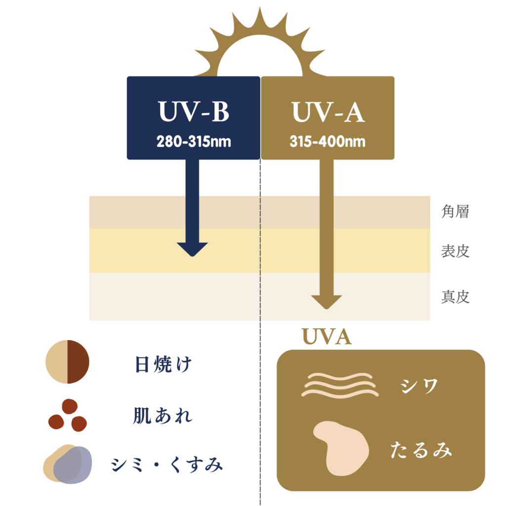 UVBは肌表面の日焼け・肌あれ・シミ・くすみ