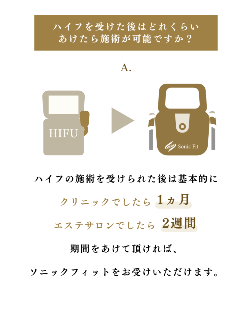 ハイフの施術を受けられた後にソニックフィットをお受け頂く場合には、