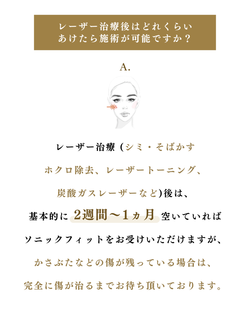 ソニックフィットの施術後は、特定の期間を開けずにレーザー治療を受けて頂くことが可能です☺︎